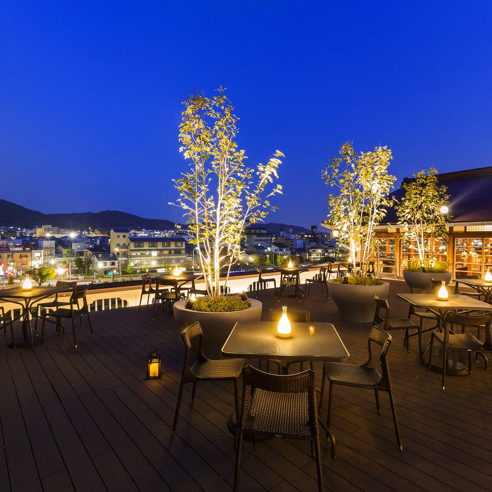 京都の夏の夜を楽しめる場所としてオープンした「KAMOGAWA 天空テラス」は、この非日常空間にふさわしく、