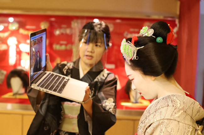 From online geisha experiences provided by KYOTO MAIKOYA to see-through acrylic hand fans, the geisha in Kyoto are trying to adjust to the hard times ahead.