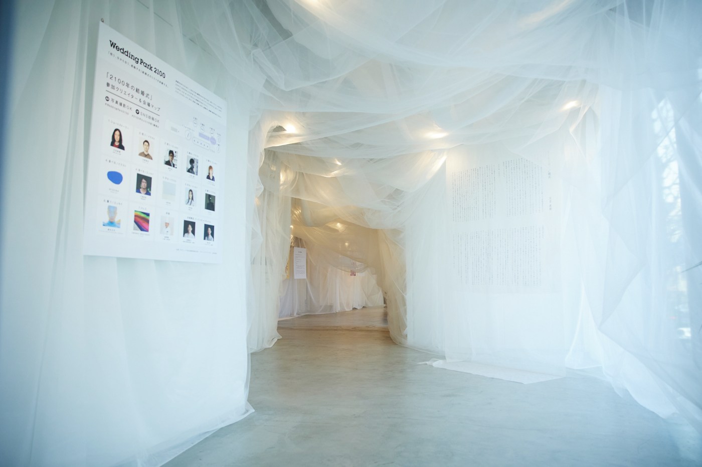 会場2階に設置された「ミライ」エリアでは、お笑い芸人・作家の又吉直樹さん、 穂村弘さん、長井短さんなど、様々なジャンルで活躍する14名のクリエイターによる「2100年の結婚式」をテーマにした新しい作品を発表いたします。