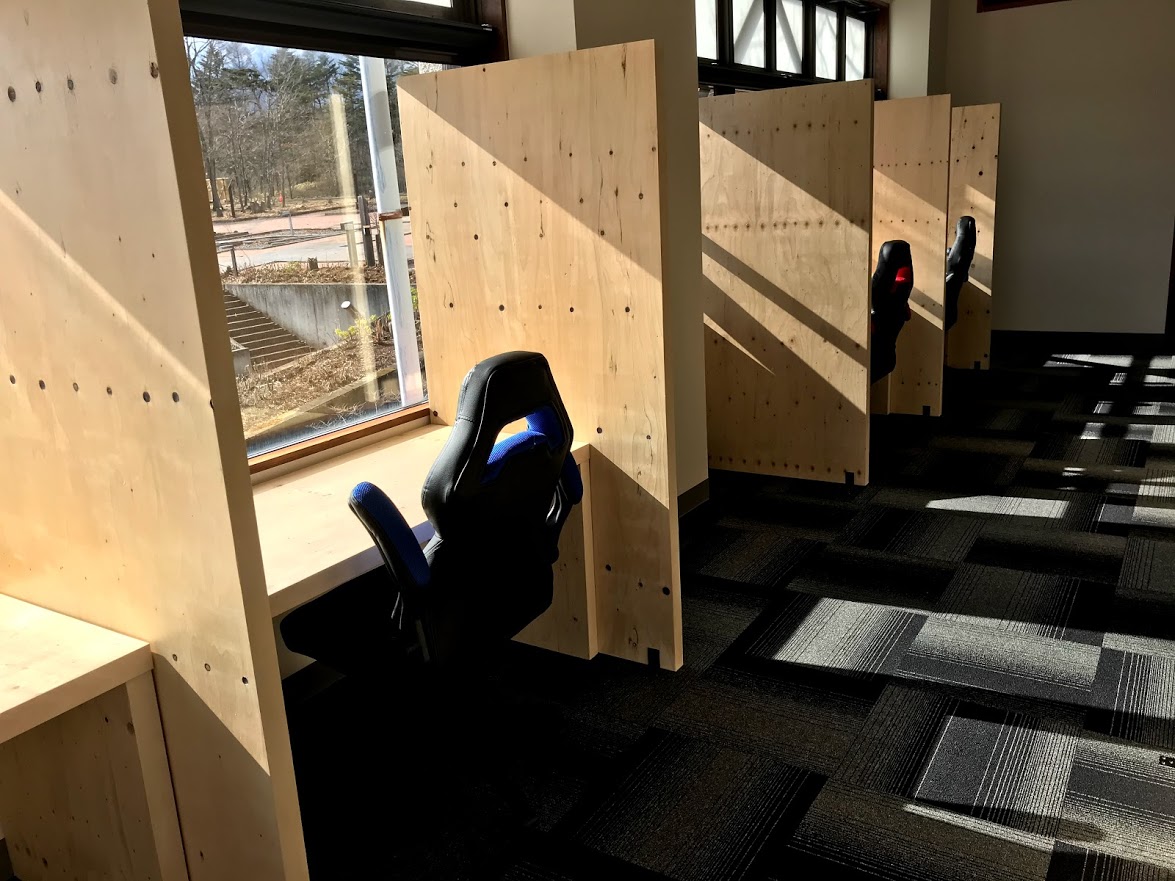 清里フォーレストは、山梨県北杜市高根町、八ヶ岳南麓に広がる清里高原の標高1,350mの地にあります。総面積200ヘクタールの別荘地「清里の森」内、森のプラザに設置され、窓からは眼前に広がる広場と遠くには富士山や南アルプスの山々が一望できるロケーションを有しています。施設内の机、パーテーションは山梨県産材の「シラベ」の間伐木で作られており、暖か味のある設備となっています。施設を一歩出ると、テニス、パークゴルフ、ディスクゴルフなどのアクティビティ施設や芝生広場・木製大型遊具(FSC認証施設)など、遊びの施設も充実しており、まさにワーケーションにぴったりの施設となっています。 https://www.kiyosato-forrest.com/