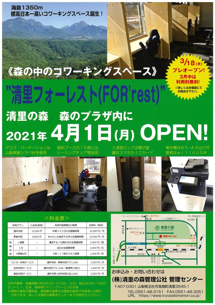 森の中のコワーキングスペース「清里フォーレスト(FOR’rest)」誕生!