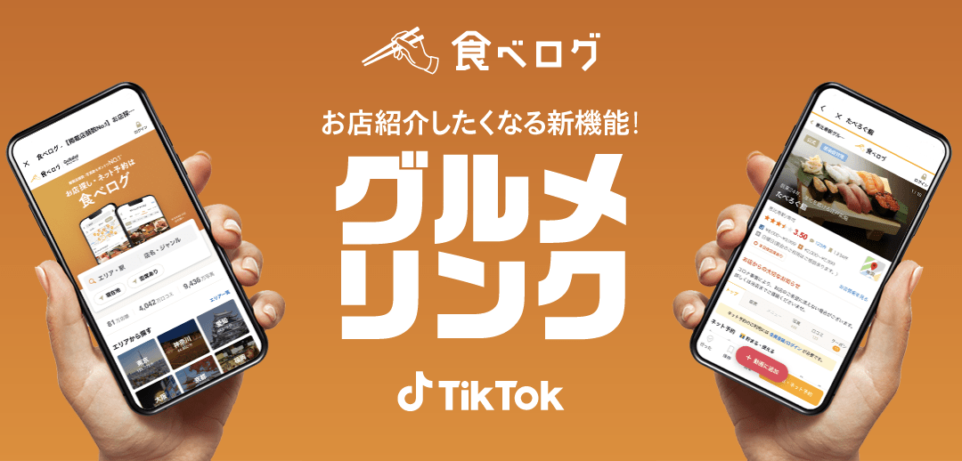 ショートムービープラットフォーム「TikTok(ティックトック)」は、株式会社カカクコムが運営するレストラン検索・予約サイト「食べログ(https://tabelog.com/)」と連携し、2021年4月14日(水)より一部ユーザーを対象にTikTokの動画に食べログの店舗情報ページへのリンクを設定できる「グルメリンク」機能を開始いたしました。これにより、TikTokの動画から食べログの店舗ページに直接アクセスし、すぐに詳細情報を参照することができます。今後、使用可能なユーザーを順次拡大予定です。