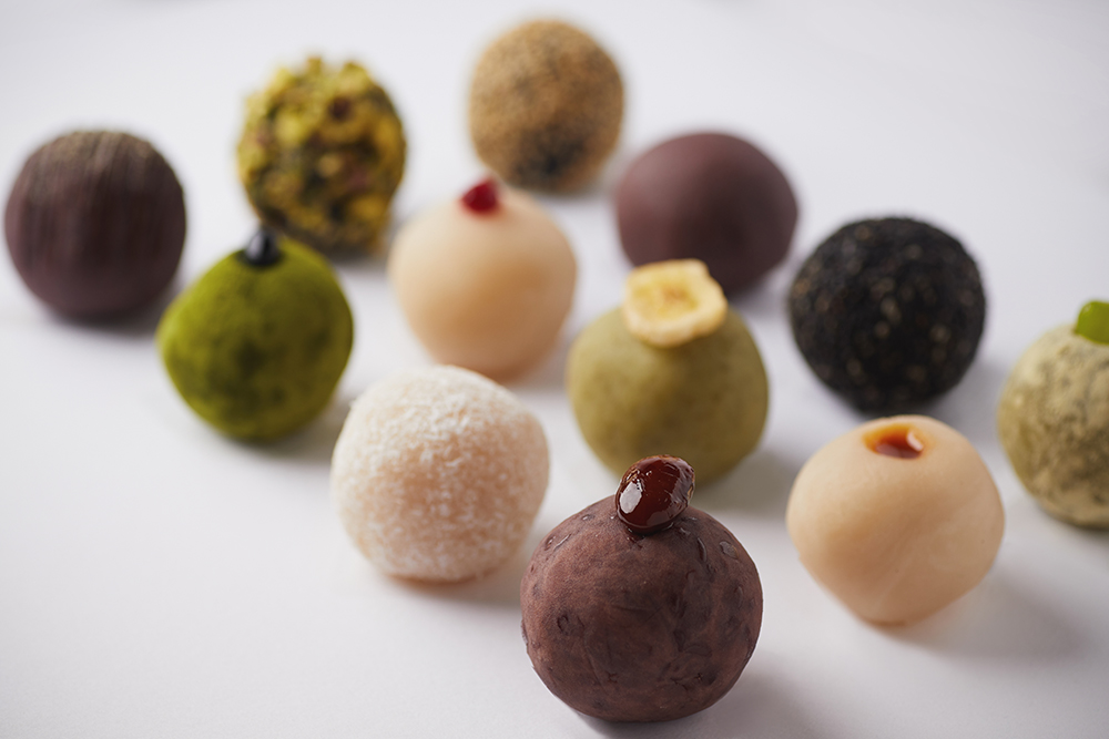 一般的なおはぎと異なるのは、フルーツやナッツ、マスカルポーネチーズを使用し、和菓子の伝統に洋菓子のエッセンスを加えていること。